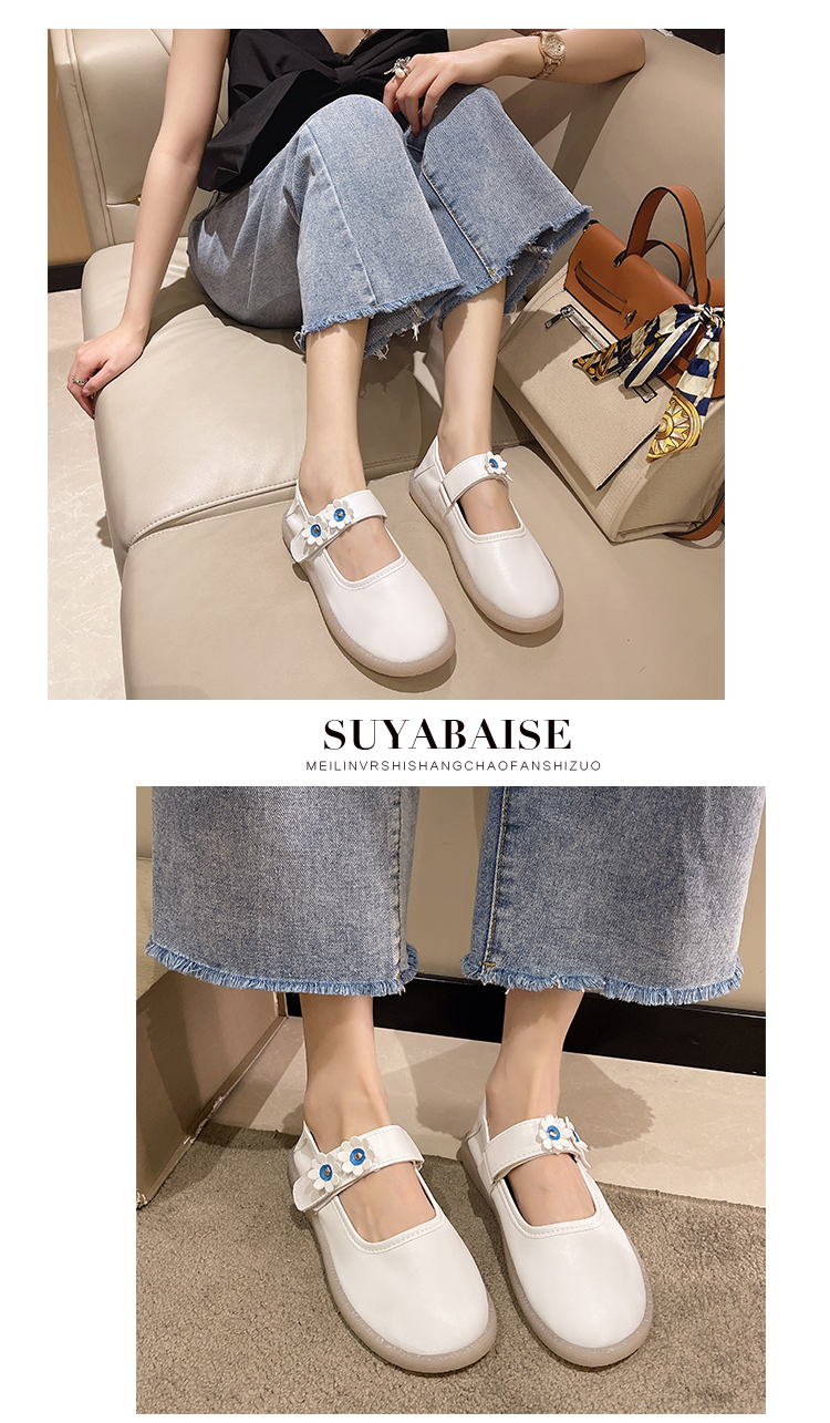 |疲れない足ナースシューズ春秋フラット滑り止め厚いソフト底快適なベルクロ小さな白い靴|{開閉方法:スリッポン