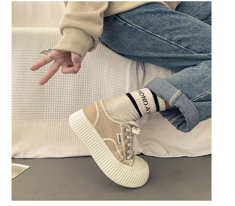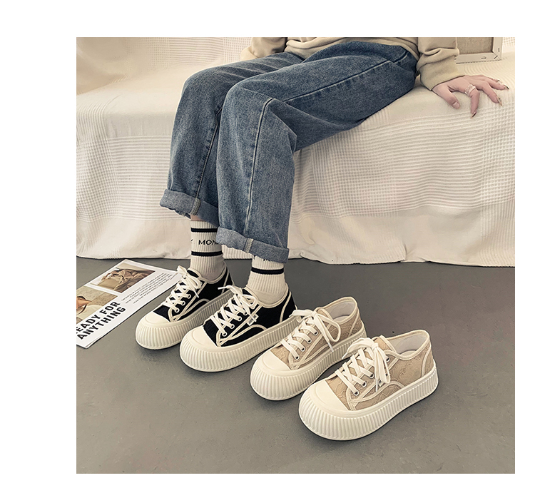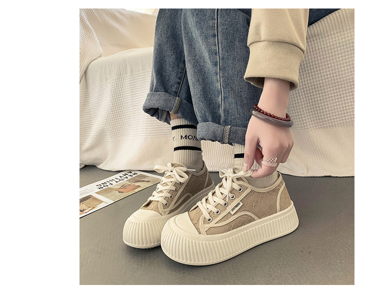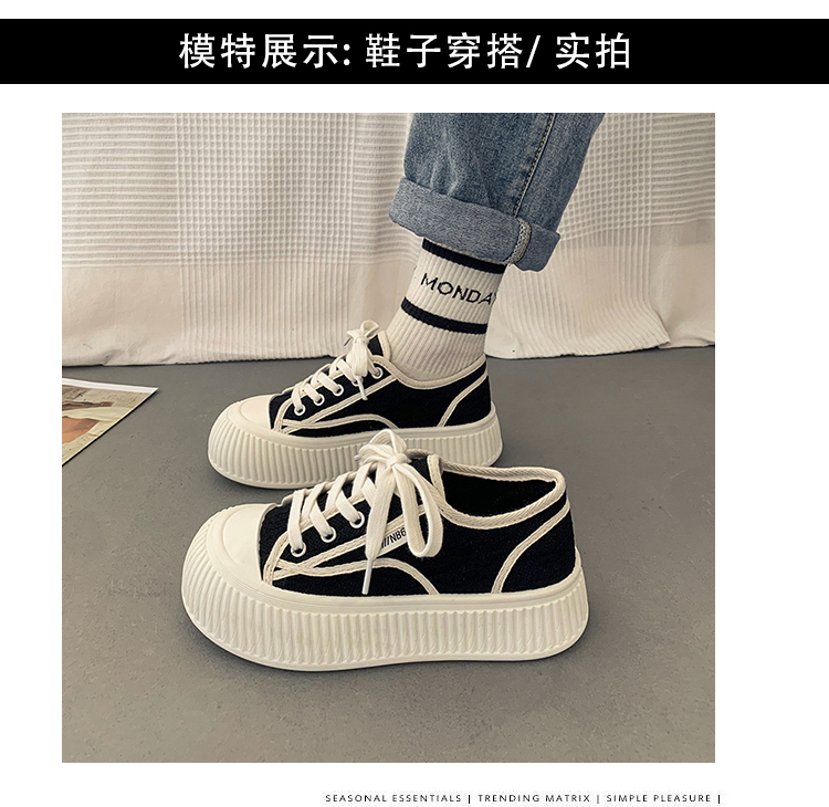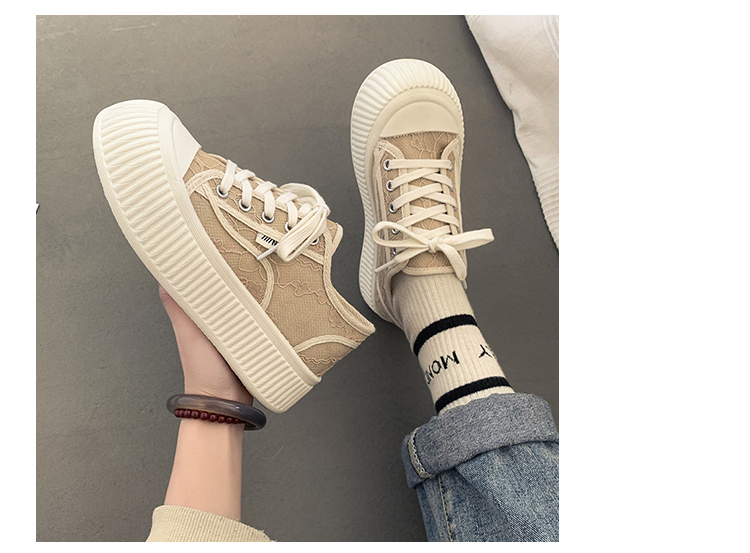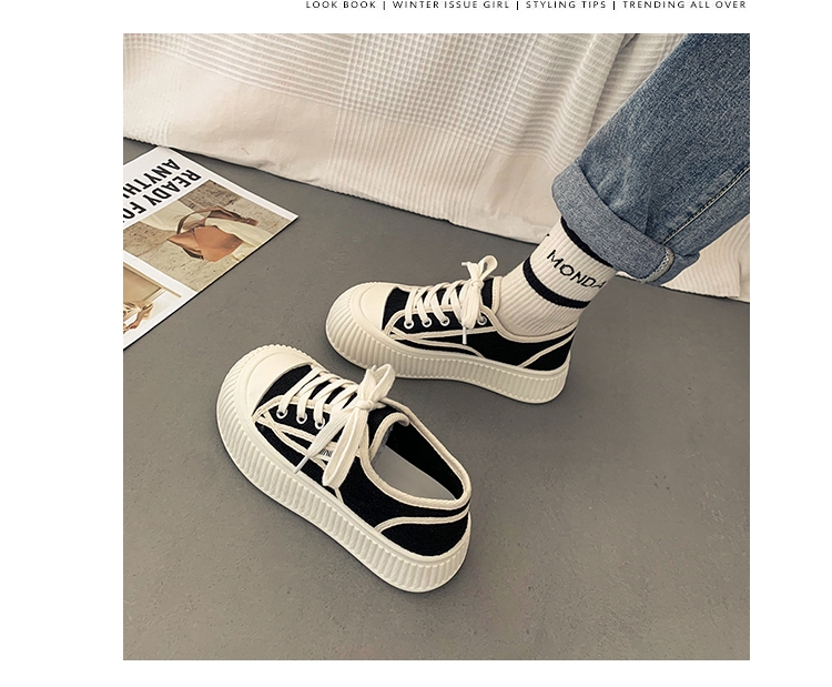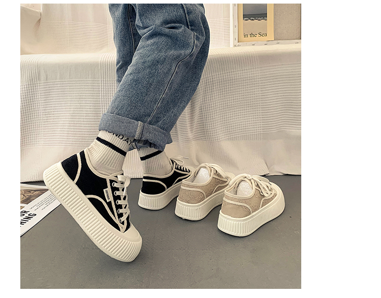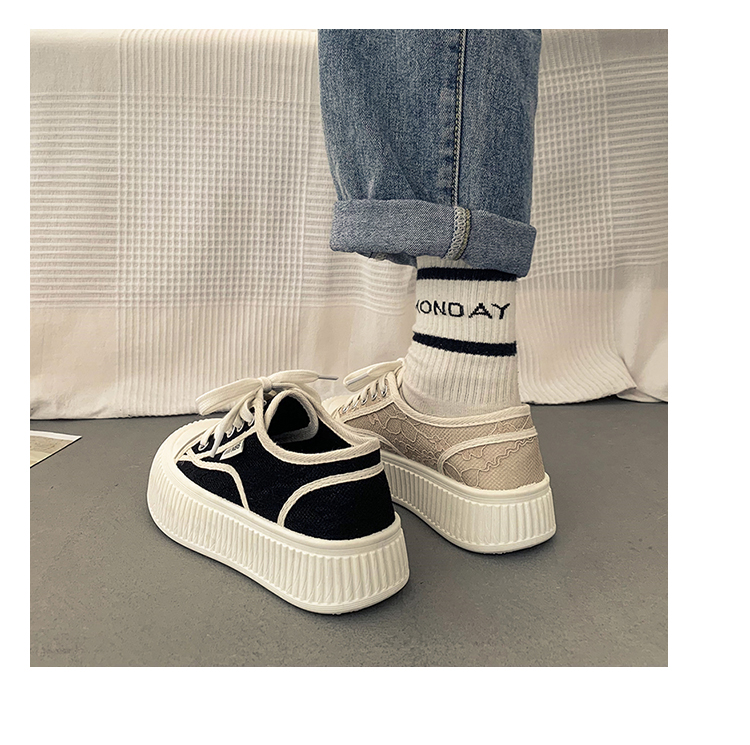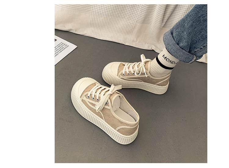 |厚底キャンバスシューズのレディースの春の小さな白い靴カジュアルレースアッププラットフォームシューズのレディース|{開閉方法:ネクタイ