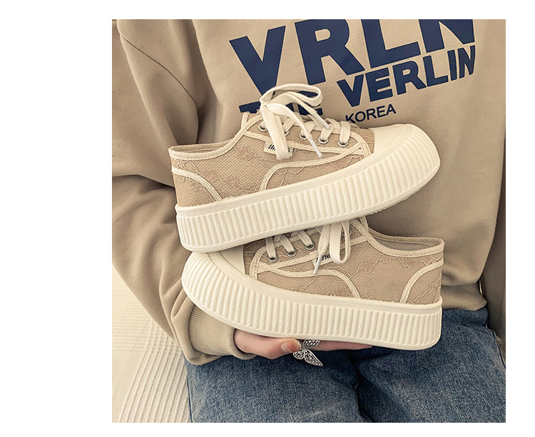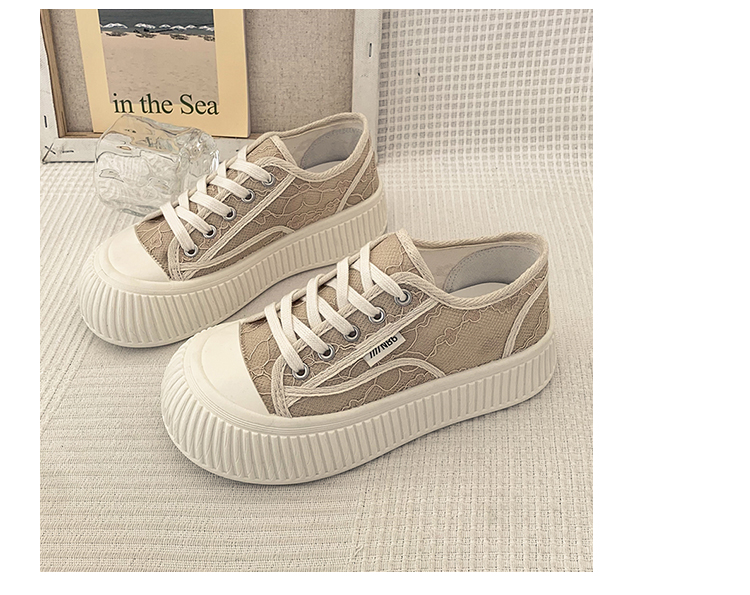 厚底キャンバスシューズのレディースの春の小さな白い靴カジュアルレースアッププラットフォームシューズのレディース