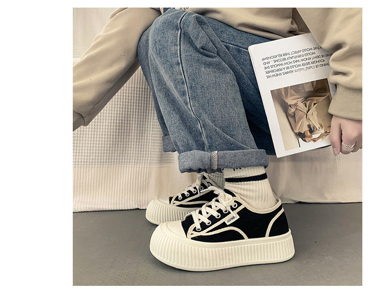ラウンドトゥ厚底高めの小さな白い靴のレディースのイントレンディなボードシューズ夏醜いかわいい大きなつま先パン靴