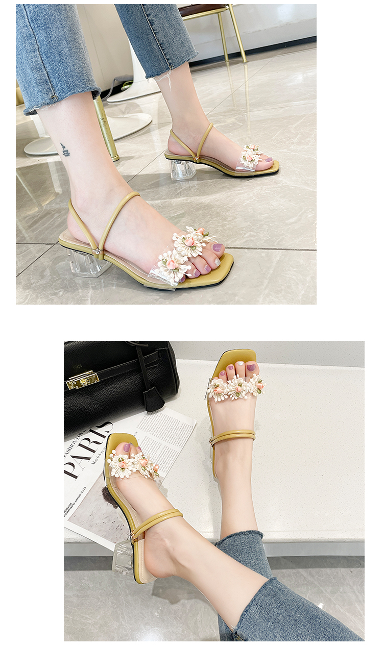 |サンダル レディース 夏のファッション 花 クリスタル チャンキーヒール ハイヒール 妖精風 2 着用サンダルとスリッパ|{開閉方法:ワンラインバックル