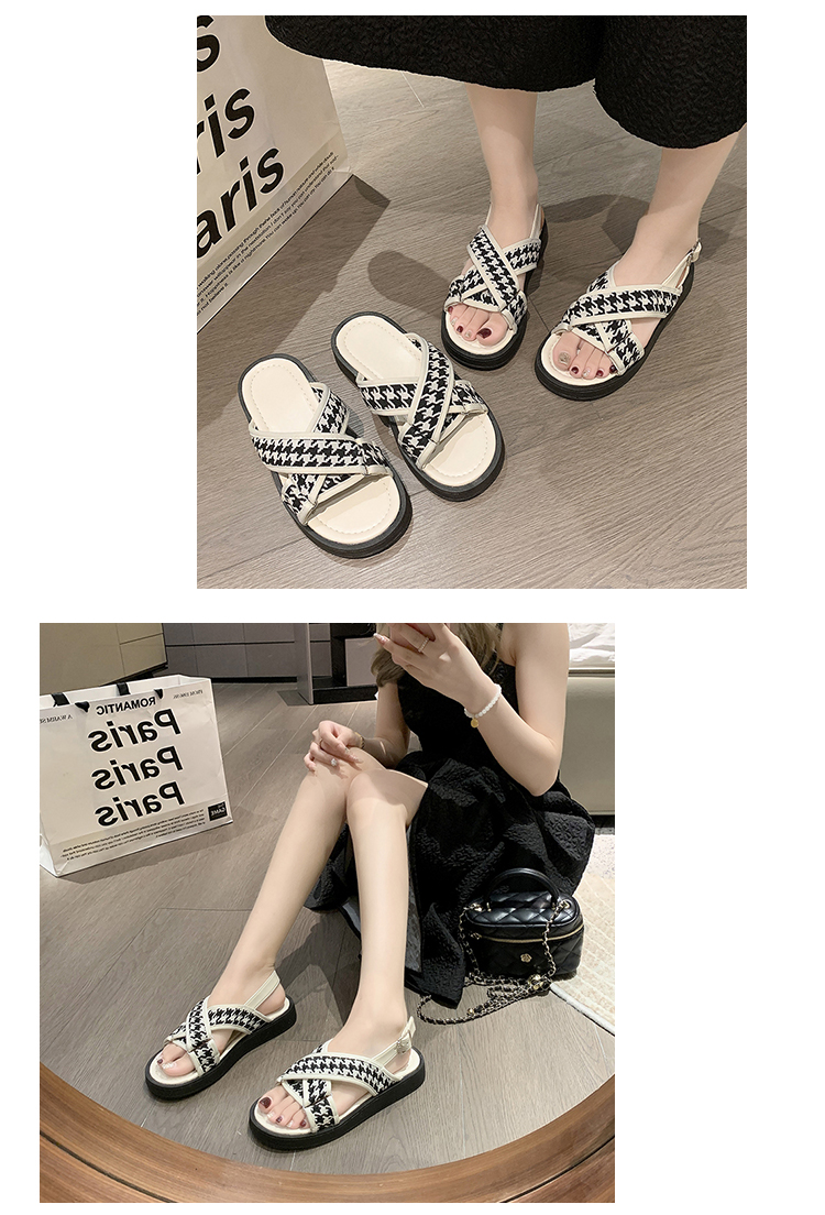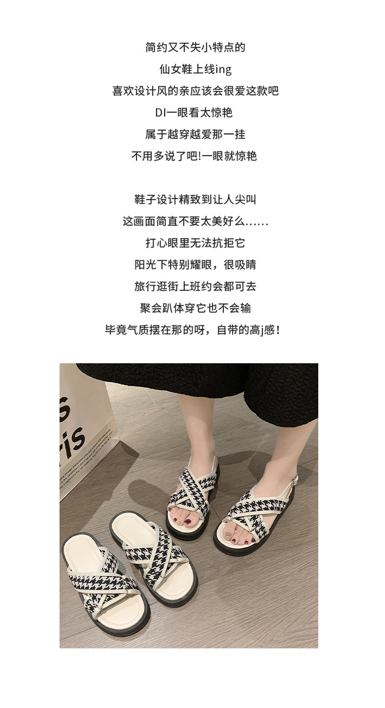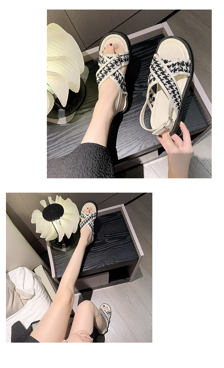 サンダルのレディースの夏のファッションレトロな外国スタイルのローヒールのスリッポンローマの靴