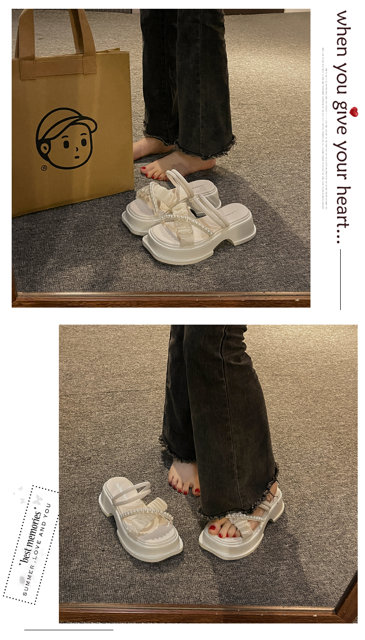 ハイエンドのサンダルとスリッパのレディースの夏の妖精スタイル、スカート付き厚底ビーチサンダル