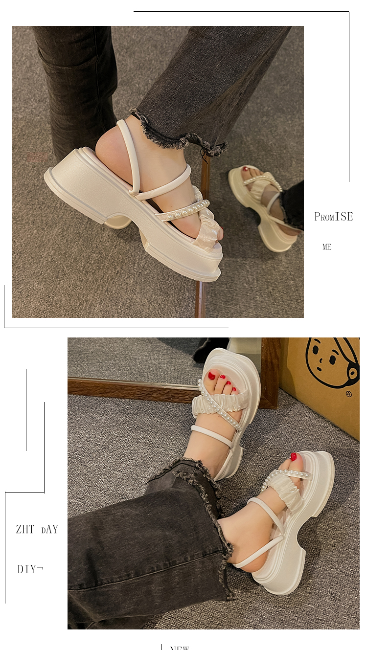 |ハイエンドのサンダルとスリッパのレディースの夏の妖精スタイル、スカート付き厚底ビーチサンダル|{サイズ:35 36 37 38 39 40 = 25センチメートル