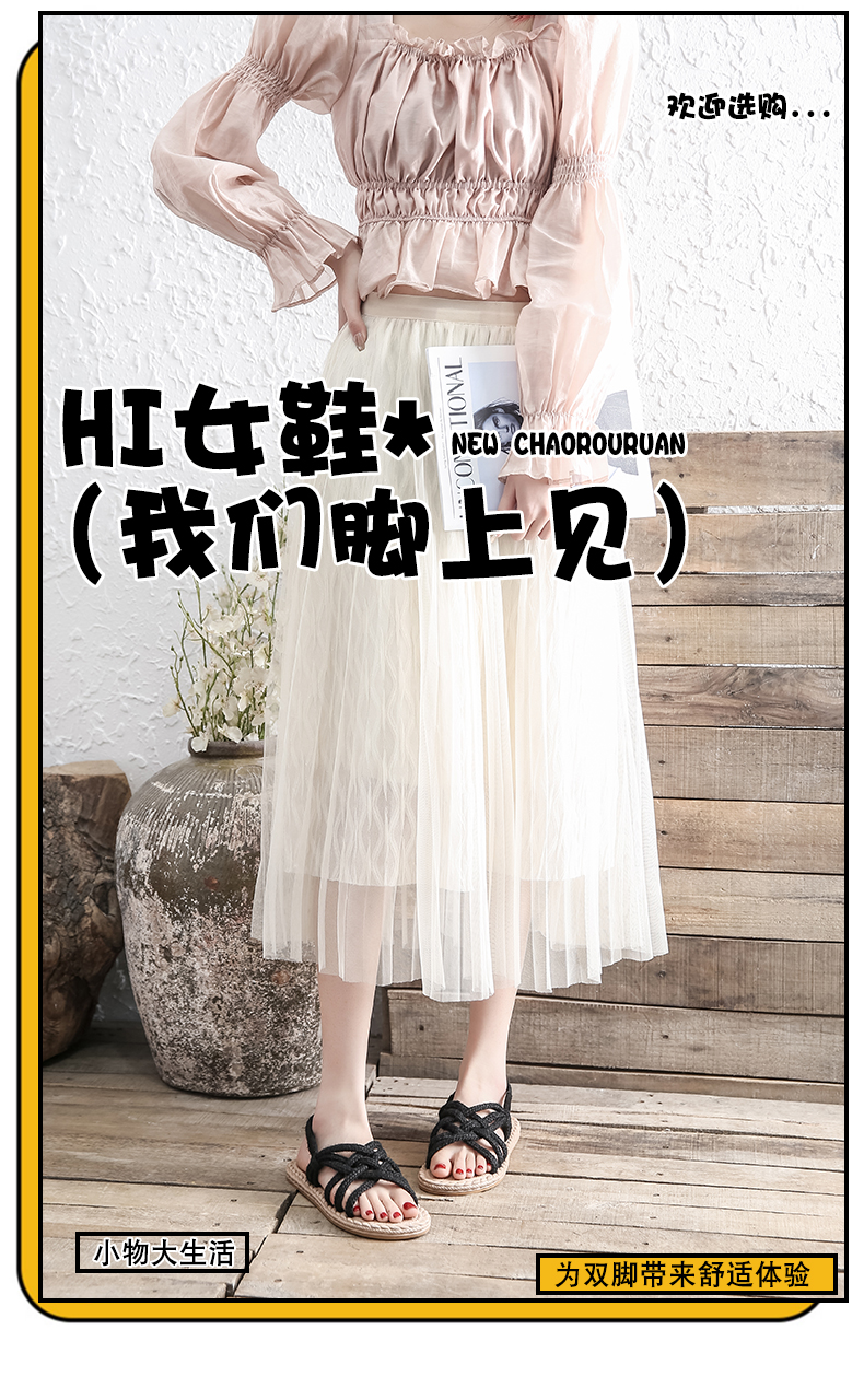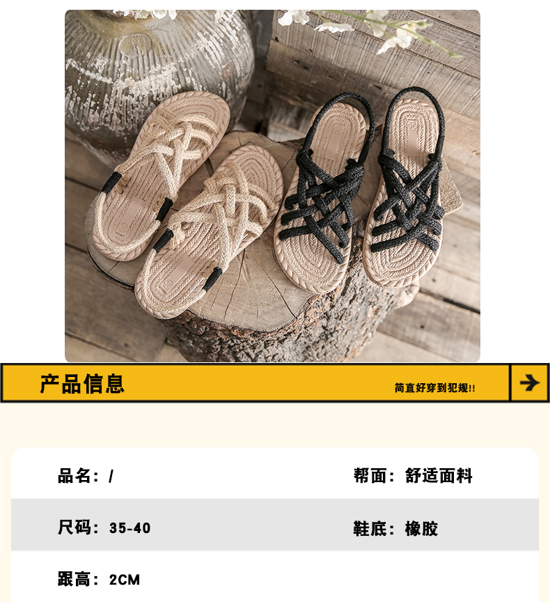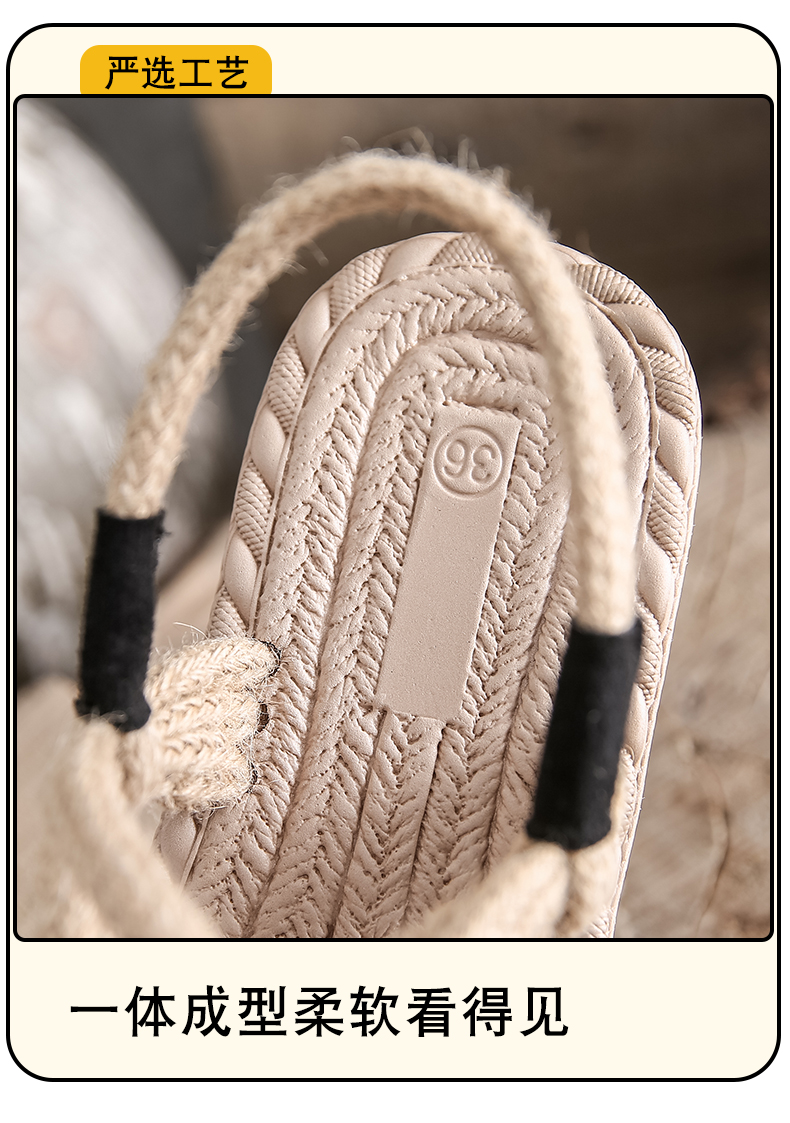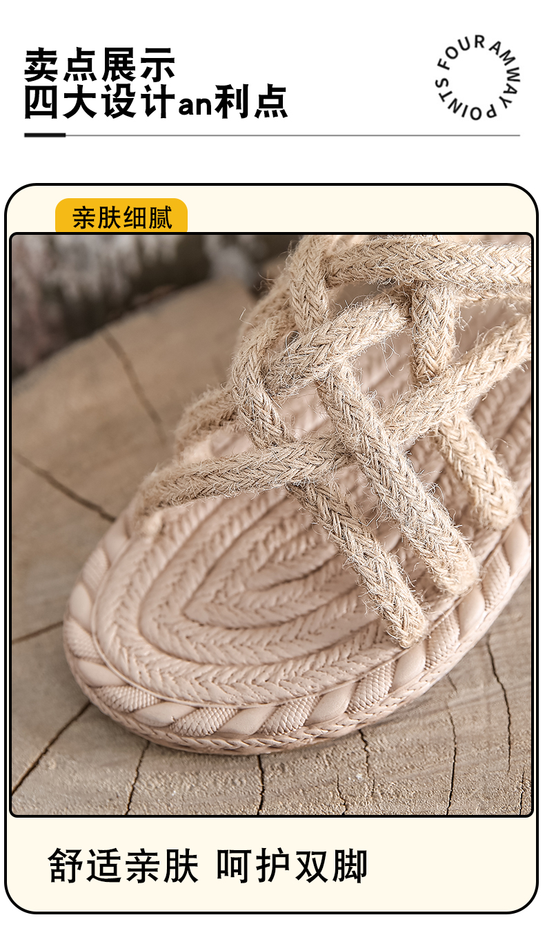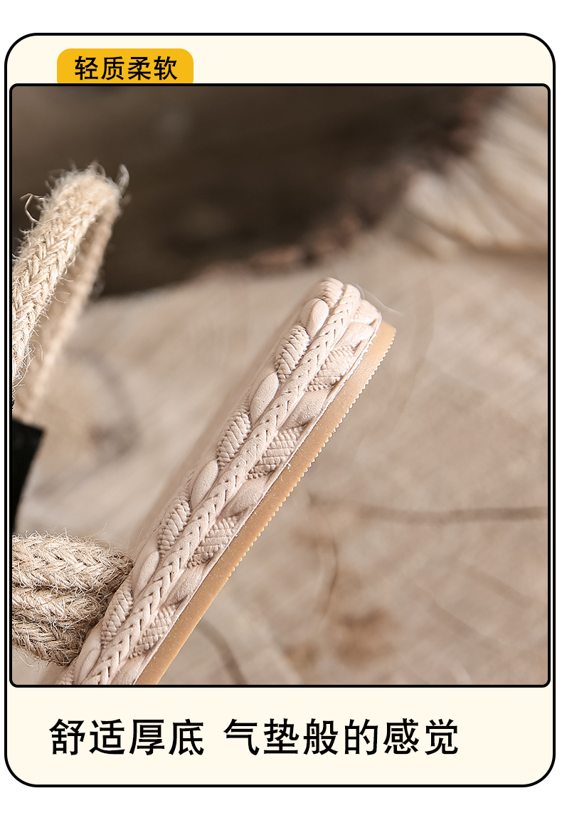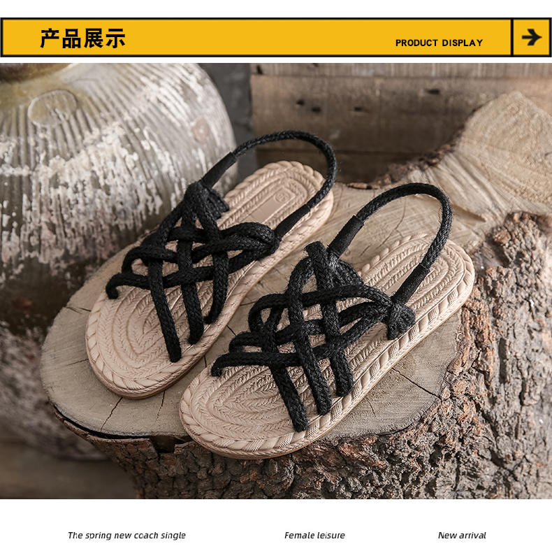 わら麻縄サンダル女子学生夏イン潮平底妖精風ローマ織り
