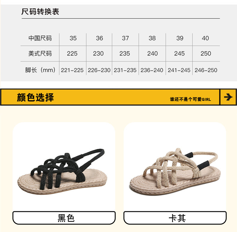 |わら麻縄サンダル女子学生夏イン潮平底妖精風ローマ織り|{サイズ: 35 36 37 38 39 40=25cm