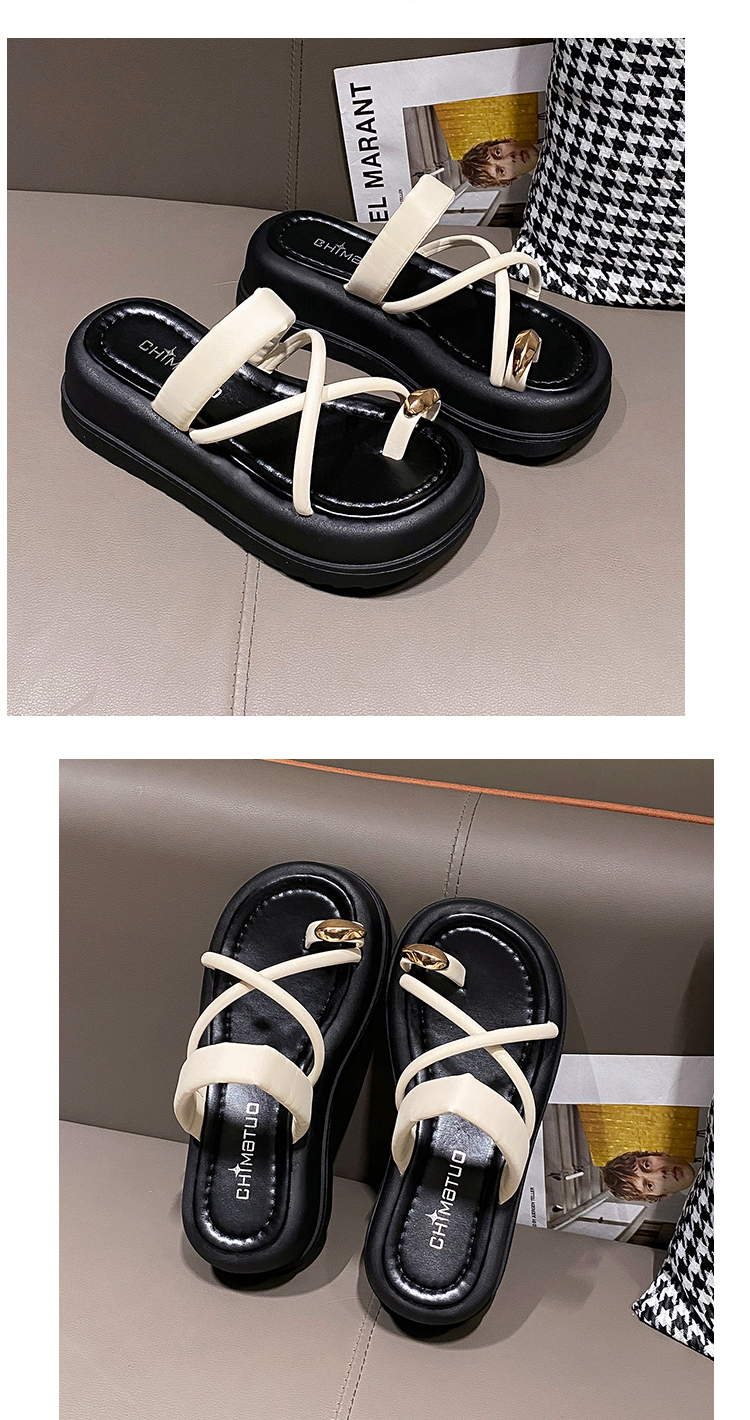 |レディーススリッパ夏レトロ小型厚底セットトゥサンダルとスリッパ|{サイズ:35 36 37 38 39 40 = 25センチメートル