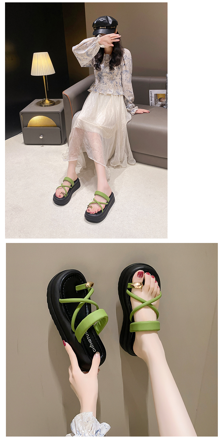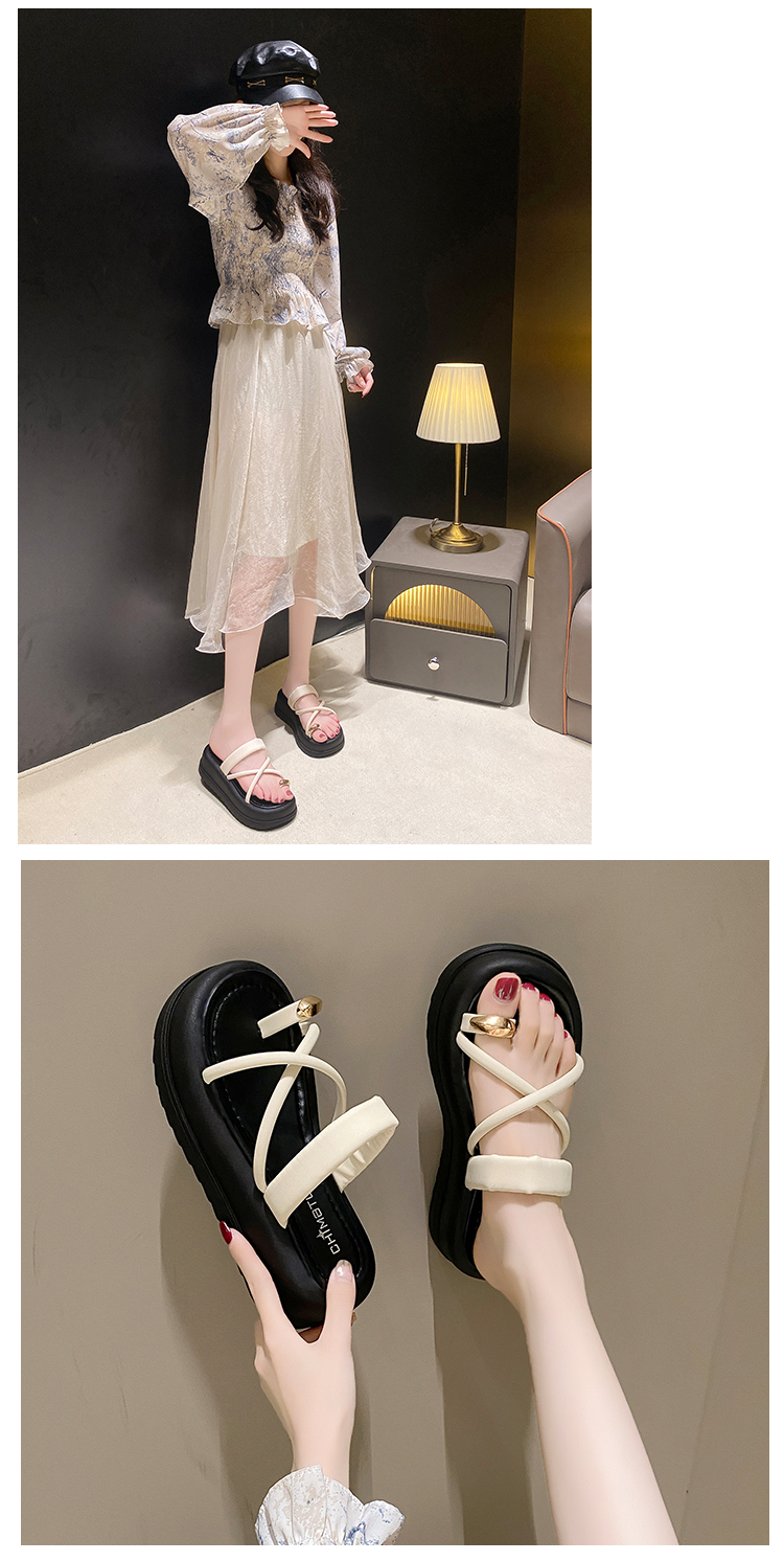 夏厚底フレンチサンダルとスリッパレディースファッションマフィンビーチシューズ